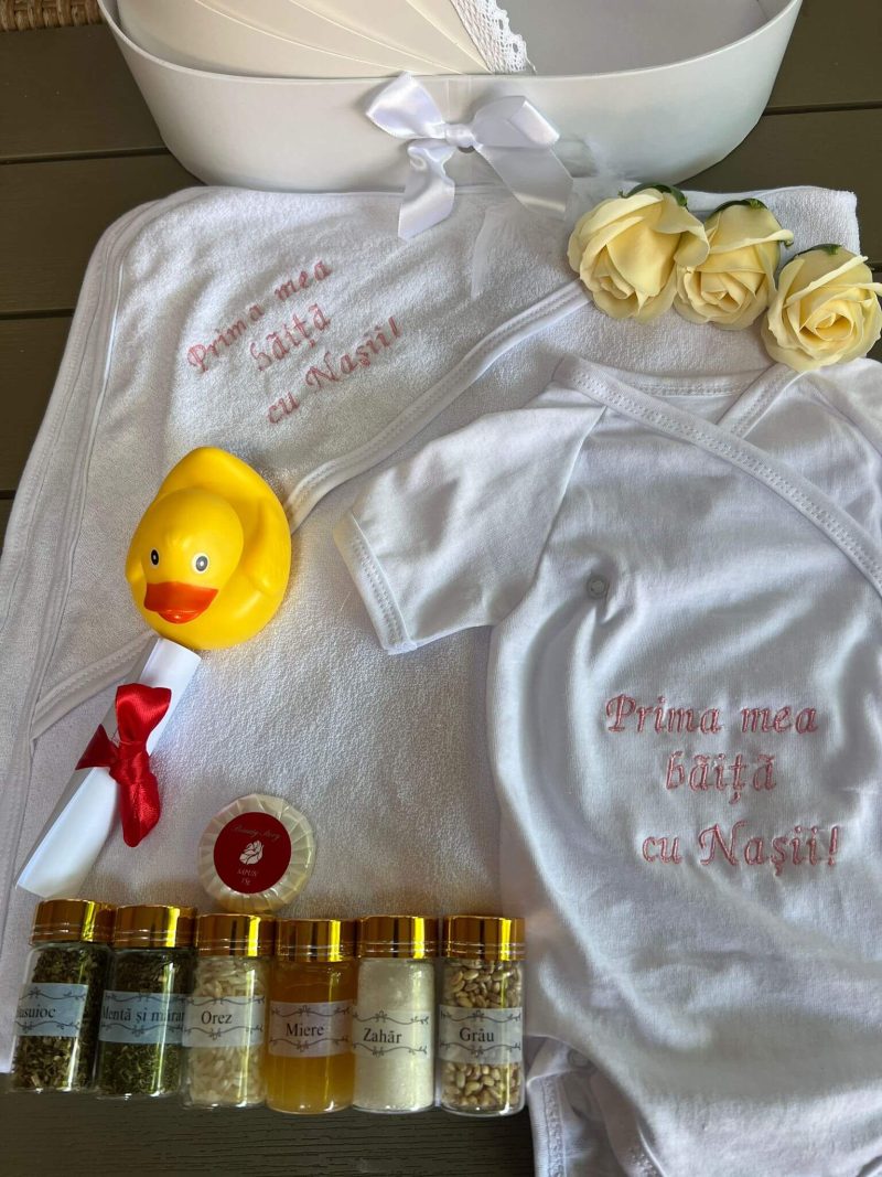 - mirodenii pentru adaugarea in cadita: orez, busuioc, zahar, grau, miere, marar si menta, flori de sapun si jucarie ratusca din plastic.