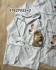 Set pentru prima baita -Print albastru cu prosop, body, halat si saculet cu mirodenii include prosop pentru baita, body, halat si mirodenii.