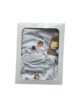 Set pentru prima baita – Print albastru cu prosop, body, halat si saculet cu mirodenii contine: